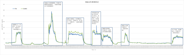 光散射技術(shù)在整車上的前裝應用,和室內(nèi)家居場景完全不同,在技術(shù)上遇到了多種困難和挑戰(zhàn)。首先,車艙內(nèi)的空氣環(huán)境更為復雜。室內(nèi)家居環(huán)境如果長期開著凈化器或者新風系統(tǒng),通過HEPA等過濾后,只要不是在霧霾天經(jīng)常開窗通風,一般室內(nèi)環(huán)境比較潔凈,大顆粒不多,1μm以下的小粒子居多。這個時候其實PM2.5與PM1.0的數(shù)值是非常接近的,那么我們通過香煙進行傳感器標定就合情合理,也有標準依據(jù)(GBT18801-2015使用紅塔山1916品牌的香煙作為標準塵源)。但是車艙內(nèi)的環(huán)境就完全不是這樣,經(jīng)常的開車窗、開汽車空調(diào)外循環(huán)都會把外界空氣引入到車內(nèi),而國道、高速、地下車庫、城市等不同道路上的環(huán)境粉塵構(gòu)成均不同,存在較大差異,如果繼續(xù)沿用室內(nèi)家居的粉塵傳感器,明顯無法做到準確的塵源識別和測量。四方光電通過多年對光散射的技術(shù)積累和對應用場景的深入理解,開發(fā)出智能塵源識別算法(API算法),能夠有效識別出車艙內(nèi)的顆粒物構(gòu)成,實現(xiàn)精準測量。
