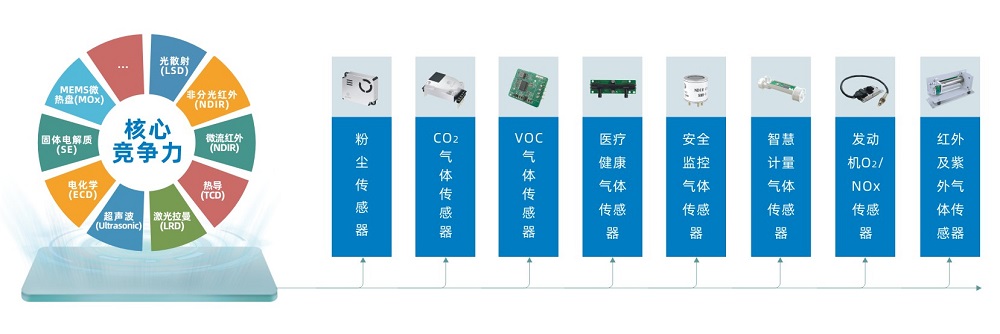 傳感器技術(shù)作為信息產(chǎn)業(yè)技術(shù)的三大支柱之一,是當(dāng)代科學(xué)技術(shù)發(fā)展的重要標(biāo)志,人們對(duì)環(huán)境、健康、安全、能源等諸多領(lǐng)域的智能化感知需求不斷升級(jí),帶動(dòng)傳感器產(chǎn)業(yè)規(guī)??焖偬嵘?。在傳感器這條充滿希望的賽道上,四方光電聚焦核心氣體傳感技術(shù)十八年,依托省級(jí)企業(yè)技術(shù)中心和省氣體分析儀器儀表工程技術(shù)研究中心兩大技術(shù)平臺(tái),目前已建立了包括光學(xué)(紅外、紫外、光散射、激光拉曼)、超聲波、MEMS金屬氧化物半導(dǎo)體 (MOX)、電化學(xué)、陶瓷厚膜工藝高溫固體電解質(zhì)等原理的氣體傳感技術(shù)平臺(tái),形成了氣體傳感器、氣體分析儀器兩大類產(chǎn)業(yè)生態(tài)、幾十款不同產(chǎn)品,通過使用上述一種或多種技術(shù)組合策略,為智慧樓宇、智慧城市、安全監(jiān)測(cè)、智慧醫(yī)療、汽車電子等眾多行業(yè)提供兼具技術(shù)創(chuàng)新和成本創(chuàng)新的綜合解決方案。