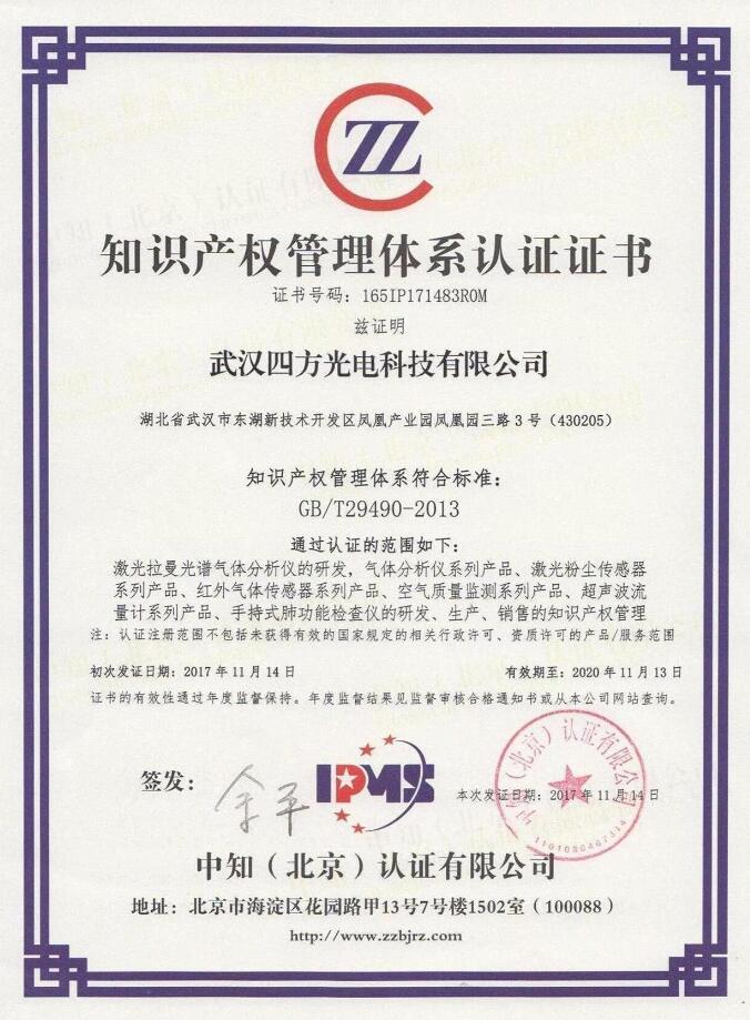 2017年11月14日,四方光電股份有限公司獲知識(shí)產(chǎn)權(quán)管理體系認(rèn)證證書。