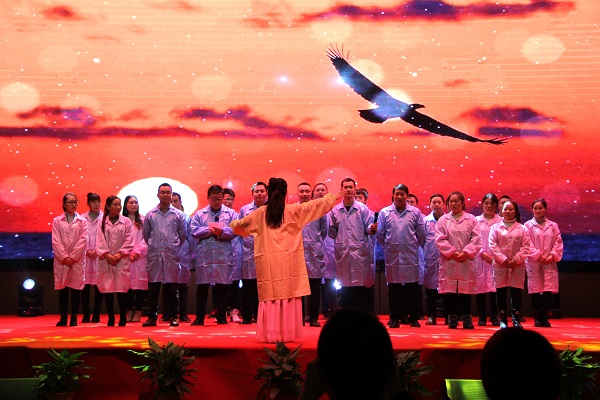 從振奮人心的水鼓舞《中國龍》,到慷慨激昂的大合唱《眾人劃槳開大船》,再到美輪美奐的古典舞《戀人心》,還有老員工們的合唱歌曲《明天會(huì)更好》,一場(chǎng)由員工自編自導(dǎo)的表演給到場(chǎng)的領(lǐng)導(dǎo)、嘉賓、全體員工及家屬帶來一場(chǎng)視聽盛宴。