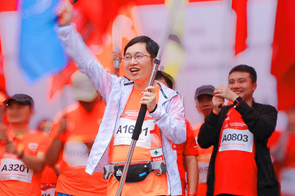 小故事:2018年,他第一次參加24小時(shí)挑戰(zhàn)賽,當(dāng)時(shí)只是選手。當(dāng)時(shí)間到達(dá)第二天上午10:30左右的時(shí)候,離比賽結(jié)束只剩90分鐘,其他5名選手全部休息調(diào)整,等待11:10末圈沖刺。這時(shí)候,他惹惱了我:因?yàn)樗麍?jiān)持一個(gè)人再去跑一圈。作為組織者,我清楚的知道比賽規(guī)則:末圈必須6人一起跑,否則,取消所有成績(jī)!然而,他說(shuō)服了我:我40分鐘跑完回來(lái),跟大家一起沖刺。堅(jiān)定的語(yǔ)氣容不得我反對(duì)。最終,他真的及時(shí)趕回來(lái),跟大家一起沖向終點(diǎn)!為團(tuán)隊(duì)多爭(zhēng)取了一圈的成績(jī)。