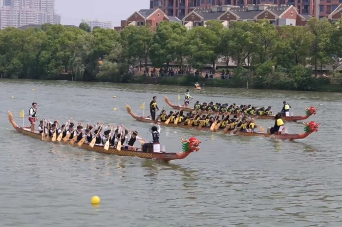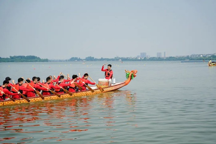本次比賽采用300米直道競速賽制,湖經(jīng)四方共建龍舟隊、四方光電龍舟隊、三期“頭雁”學員龍舟隊、武漢市高新技術產(chǎn)業(yè)協(xié)會龍舟隊、長盈通龍舟隊、中步擎天和普迪真空龍舟隊、利楚商服龍舟隊、中科創(chuàng)新龍舟隊8支隊伍在碧波蕩漾的楊橋湖上展開激烈爭奪。