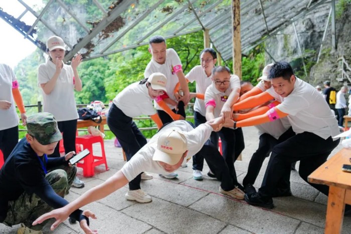 出征儀式結(jié)束后,參訓(xùn)隊伍迎來了本次淬煉之旅的首個挑戰(zhàn)——清江方山8.5公里徒步。隊員們不懼風(fēng)雨、翻山越嶺挑戰(zhàn)體能極限,戰(zhàn)勝高空玻璃棧道的心理恐懼,并在行進(jìn)中完成“群龍取水”“智慧拼圖”“妙筆生花”等一系列考驗集體協(xié)作與智慧的團(tuán)隊任務(wù)。一天活動下來,來自不同事業(yè)部的隊員,從陌生到默契,逐步破冰融合。當(dāng)晚的“小組夸夸會”上,隊員們彼此發(fā)掘身上的優(yōu)秀行為事例,相互夸獎激勵,團(tuán)隊的信任感愈發(fā)深厚、凝聚力不斷增強(qiáng)。