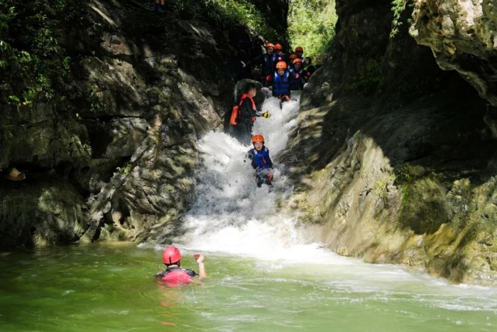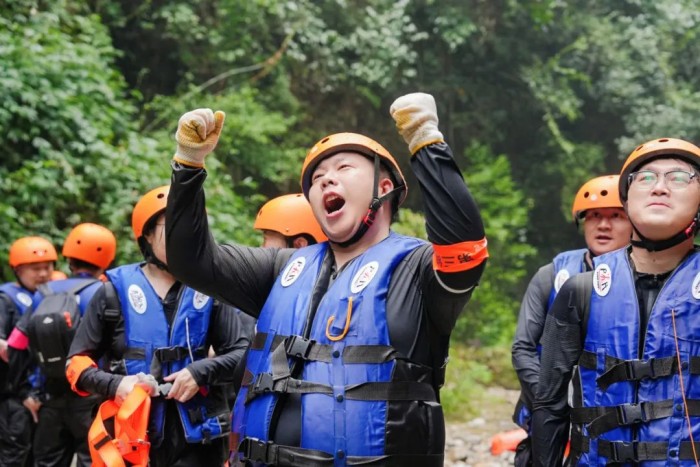 完成第一天的耐力歷練,8月23日,參訓(xùn)隊伍迎來了勇氣考驗。在峽谷的激流之中,隊員們首先完成近4公里溯溪,緊接著是更具難度的10米、40米雙重瀑降,最后是5米深潭的勇敢一躍。面對“極限挑戰(zhàn)”,所有的隊員心系團(tuán)隊榮譽(yù),勇敢突破自我,圓滿完成各項任務(wù),用實際行動詮釋了營銷團(tuán)隊強(qiáng)大的戰(zhàn)斗力、高效的執(zhí)行力和堅韌的凝聚力。當(dāng)晚,各支隊伍總結(jié)復(fù)盤評選勇于突破自我的“最佳戰(zhàn)神”,并精心準(zhǔn)備奉獻(xiàn)了充滿歡聲笑語的歌舞晚會。