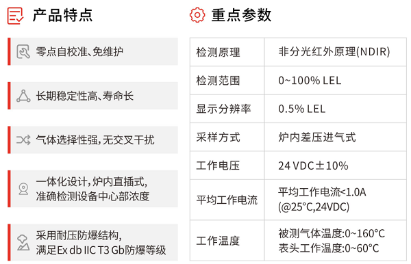 結(jié)構(gòu)上,Gasboard-2063采樣本體及顯示部分采用一體化防爆設(shè)計(jì),易于安裝與拆卸;氣室采用恒溫設(shè)計(jì),消除溫度影響;鋁質(zhì)頭部+隔熱塊進(jìn)行隔熱預(yù)處理,防止元器件性能下降;各結(jié)合部分設(shè)有防水密封圈,滿足IP66防護(hù)等級(jí)。